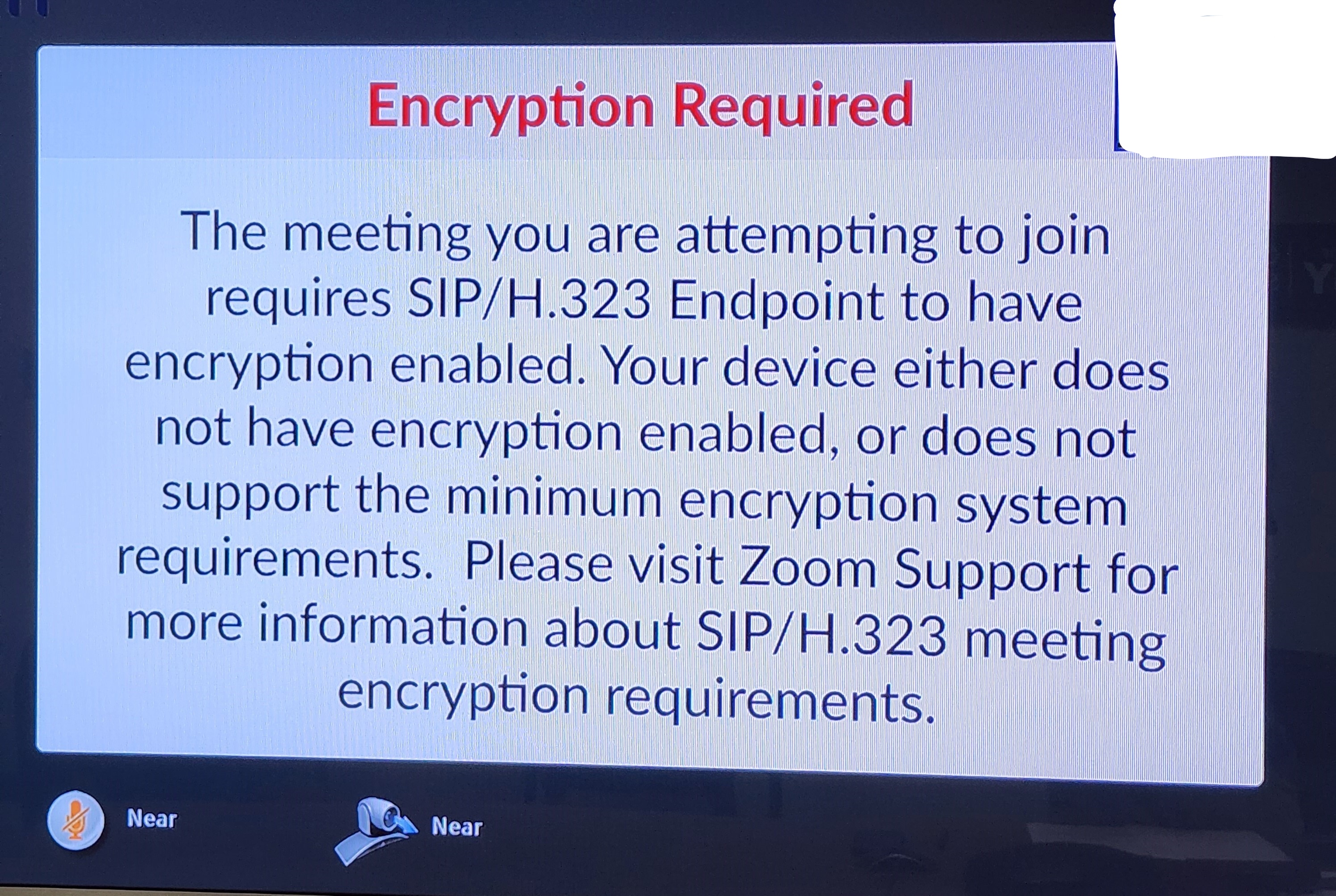 When making Zoom calls on a Polycom system you may encounter the message below after inputting your meeting ID and Passcode.